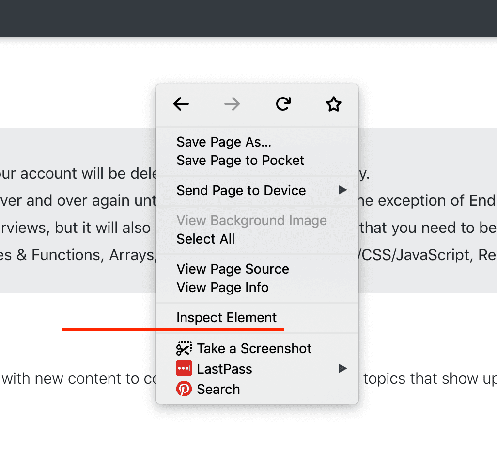 1. Open your browser, then right-click on the browser, then click on Inspect Element or Inspect (Firefox and Chrome).